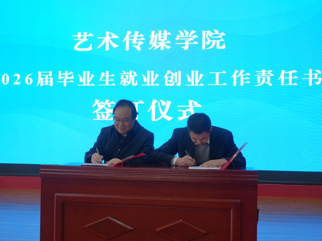 会上,学生工作部相关负责人解读了《潍坊食品科技职业学院就业工作专项经费管理办法》《潍坊食品科技职业学院2026届毕业生就业创业工作方案》;工学院、食药学院、康养学院、艺术传媒学院负责人结合专业特色与学生实际,依次汇报了本学院就业创业工作方案;亓俊忠代表学校与学生工作部、工学院、食药学院、康养学院、艺术传媒学院负责人依次签订了《2026届毕业生就业创业工作责任书》,以责任状形式压实各方工作责任。