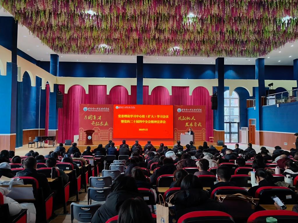 1月12日,我校召开党委理论学习中心组(扩大)学习会议暨党的二十届四中全会精神宣讲会,深入学习宣传贯彻党的二十届四中全会精神,科学擘画学校“十五五”时期发展蓝图。学校党委书记肖明胜作专题辅导报告,党委副书记、校长亓俊忠主持会议,全体校领导、中层干部及教职工参会。