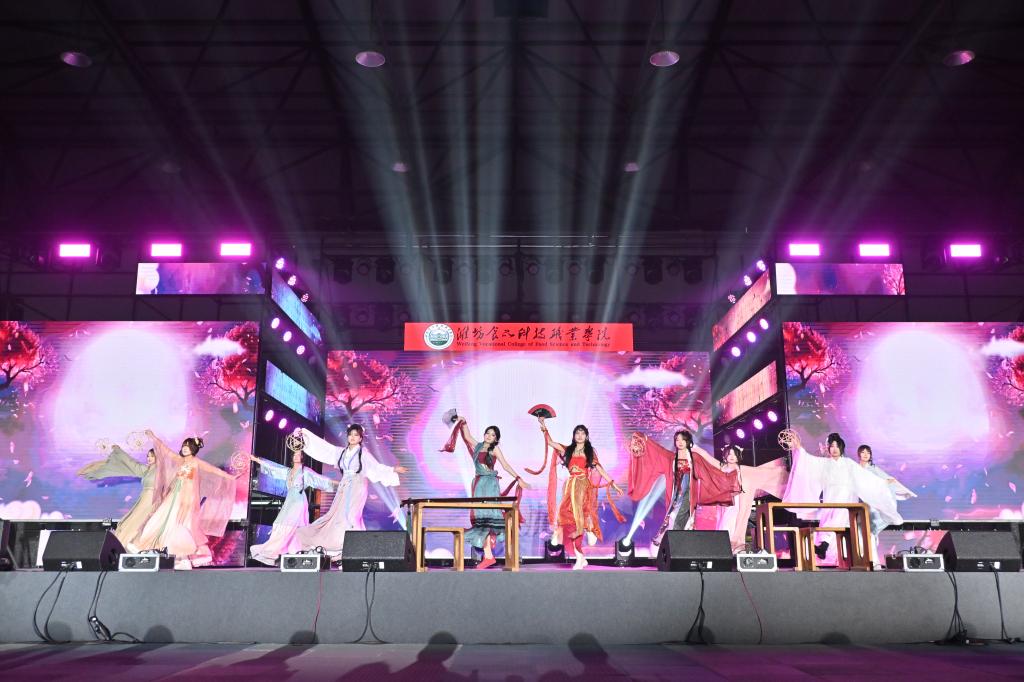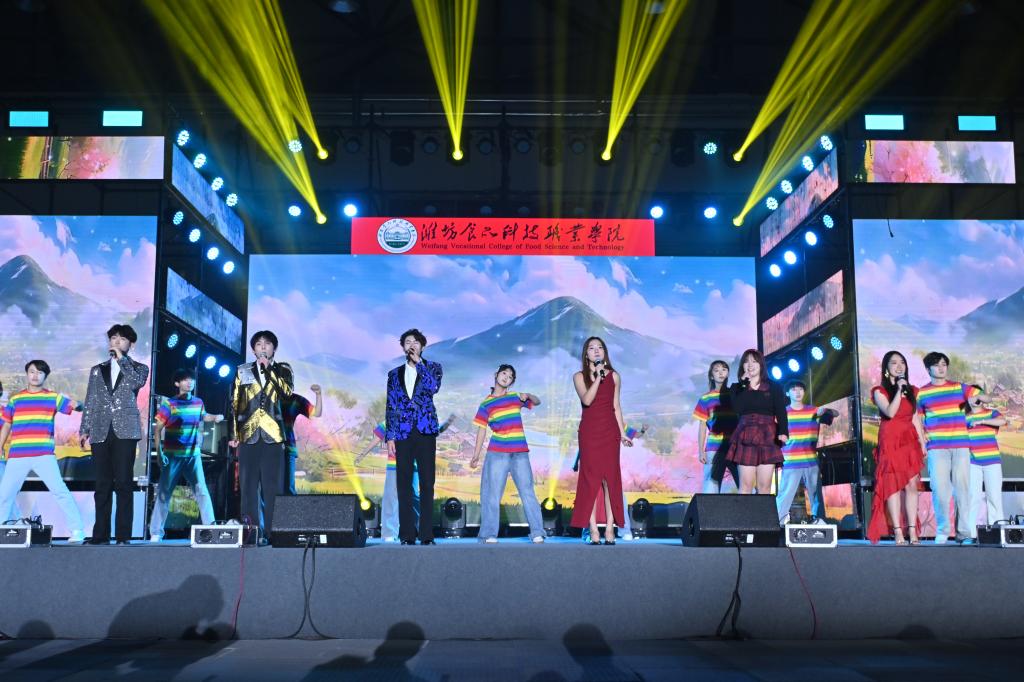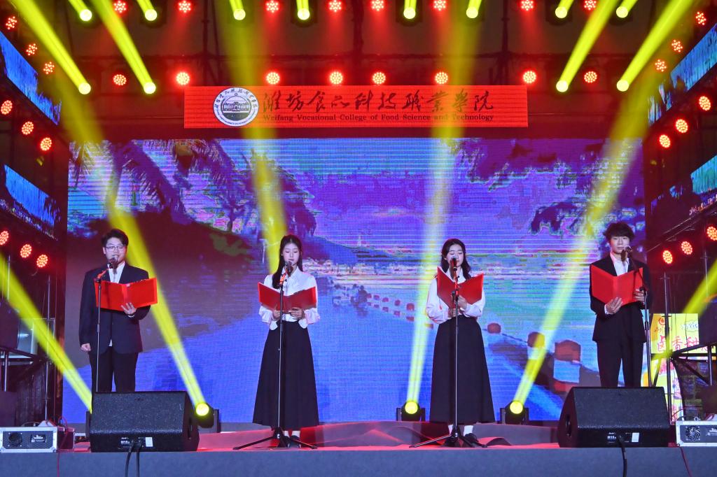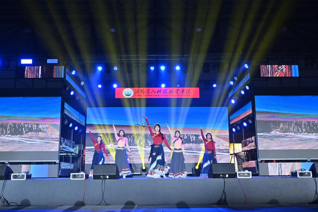晚会围绕“岁序启新・忆暖同行”“华章共谱・同心致远”“鲜衣怒马・燃动青春”“逐梦苍穹・共赴新程”四个篇章徐徐展开,结构层次分明,内容精彩纷呈,全方位展现了潍食学子的青春风采与师生们的家国情怀。